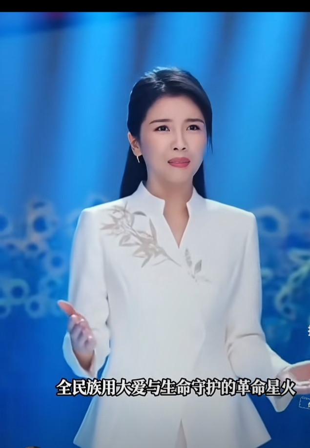 刘涛朗诵舞台造型吸睛, 白色刺绣套装配低马尾气质端庄尽显央视范